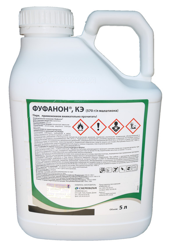 В организме вредителей действующее вещество препарата – малатион - превращается в более токсичный продукт – малаоксон, обеспечивающий высокую эффективность работы Фуфанона КЭ.